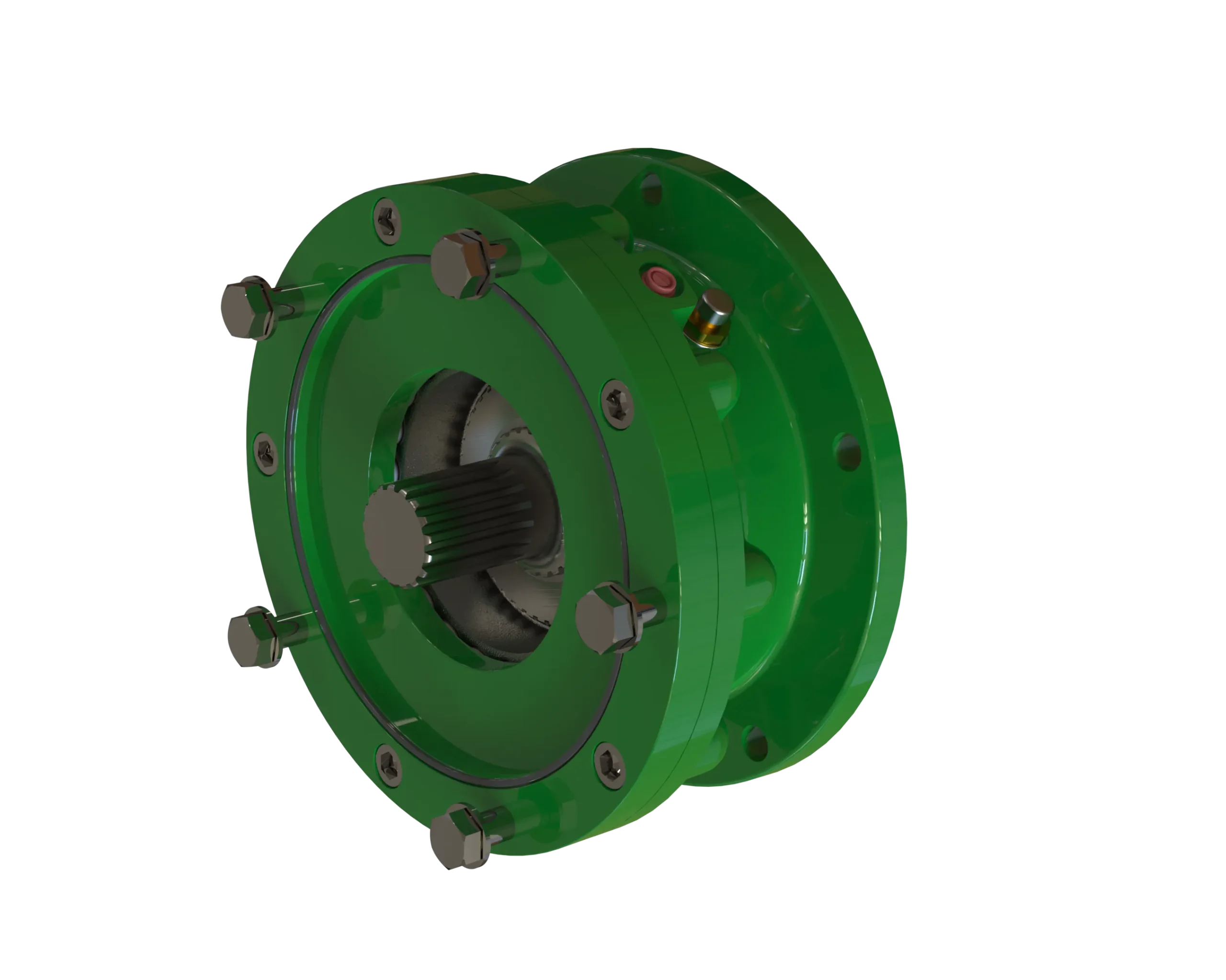 Freni di stazionamento ed emergenza con pilotaggio idraulico (negativi, multidisco in olio) con uscita albero, applicabili al motore.